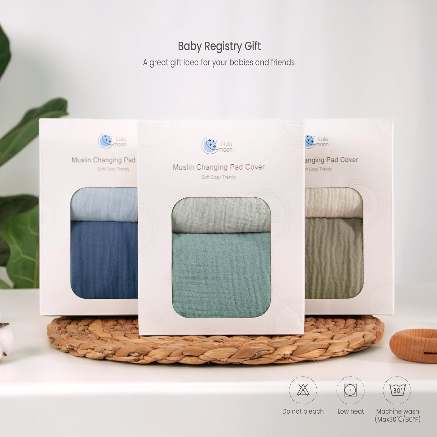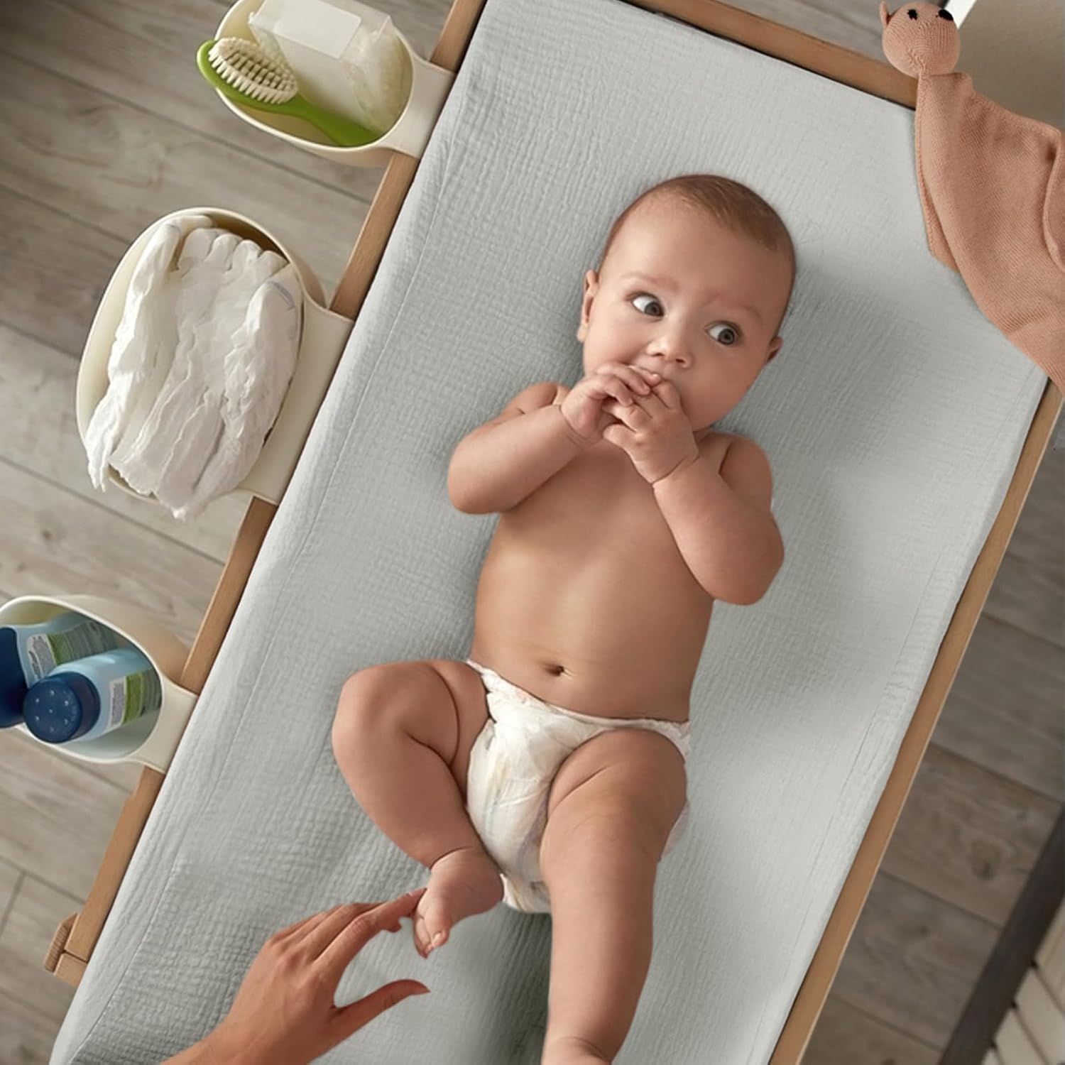 Create a calm and cozy changing space with the Lulumoon Muslin Cotton Changing Pad Cover. Made from ultra-soft, breathable muslin cotton, it offers a gentle touch that’s perfect for delicate newborn skin. The airy weave helps maintain airflow, keeping your little one cool and comfortable during every diaper change.