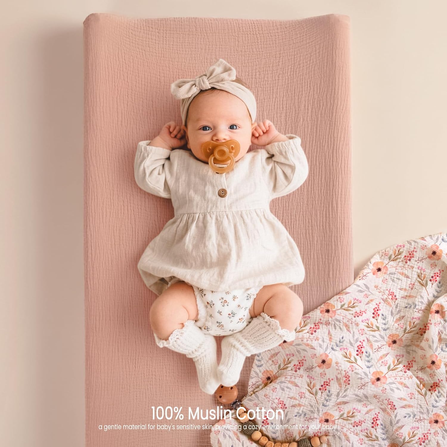 A beautifully crafted floral print adds a soothing, dreamy charm to your nursery. The soft hues and delicate details bring a touch of sweetness to your everyday routine, turning even quick changes into calm, comforting moments.