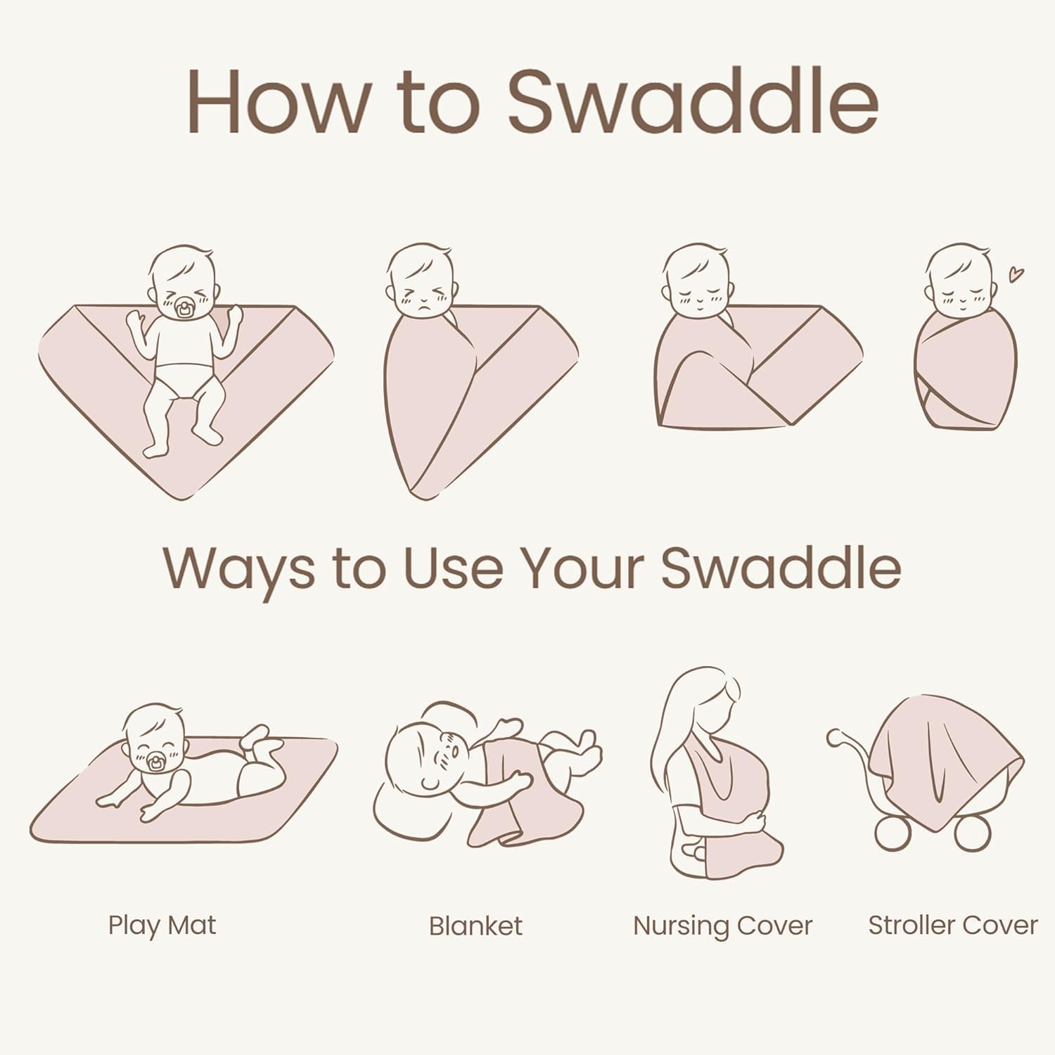 Multi-purpose design – use as a blanket, stroller cover or swaddle