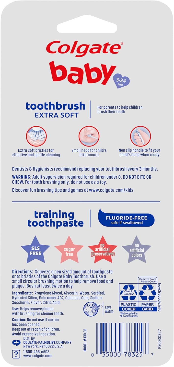 Introduce your baby to healthy oral care habits with the Colgate My First Baby & Toddler Toothpaste and Toothbrush Kit — specially designed for children under 2 years old. The fluoride-free toothpaste gently cleans without harsh ingredients, keeping tiny teeth and gums safe and clean.